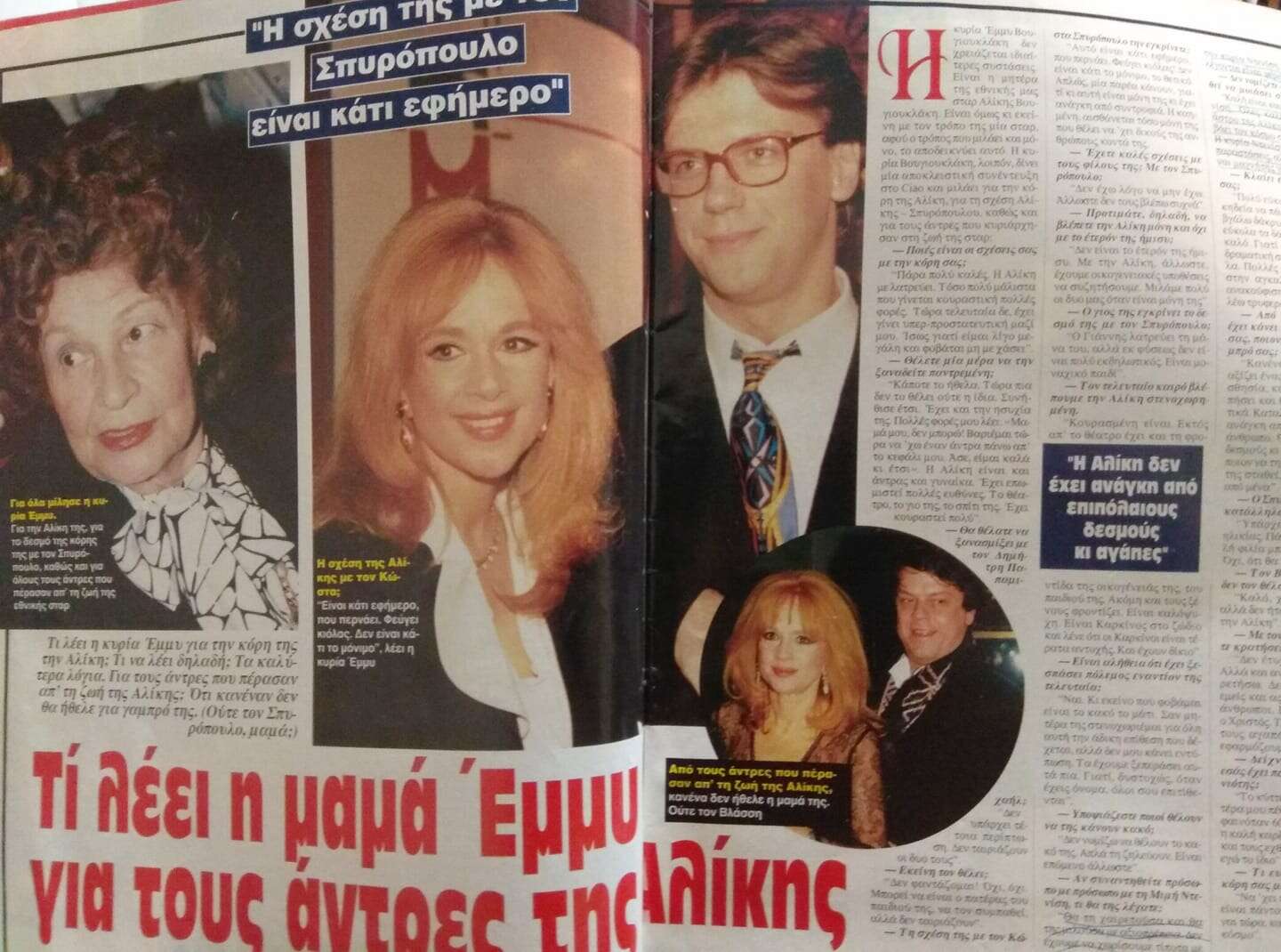 Η μαμά της Έμμυ, είχε δώσει τότε μια σπάνια συνέντευξη στο περιοδικό CIAO που μιλούσε για την σχέση της με το “Αλικάκι της” όπως την έλεγε αλλά και για τους άνδρες της Αλίκης. Τα περιοδικά της εποχής προσπαθούσαν να βρουν ειδήσεις για την Αλίκη με σκοπό να αυξήσουν τις πωλήσεις τους. Ακόμα και στα ψιλά να πέρναγε μια είδηση με το όνομα της Αλίκης, οι πωλήσεις ήταν δεδομένο ότι θα ανέβουν στα ύψη. Παράλληλα, η Έφη Πίκουλα, η νύφη της Αλίκης Βουγιουκλάκη αποκάλυψε τις τελευταίες της στιγμές πριν φύγει από τη ζωή.