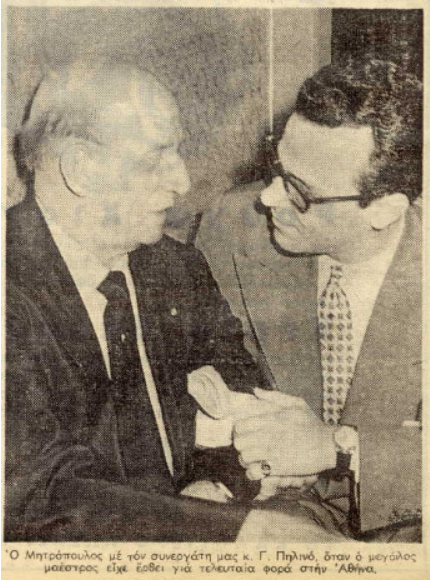 Το εν λόγω δημοσίευμα περιελάμβανε ένα έξοχο εισαγωγικό κείμενο για την προσωπικότητα του Μητρόπουλου, καθώς και τη μαρτυρία του καταξιωμένου δημοσιογράφου (καλλιτεχνικού συντάκτη) Γιώργου Πηλιχού (1929-2003) για τον εκλιπόντα μεγάλο μαέστρο, τον οποίον είχε την τύχη να γνωρίζει προσωπικώς.