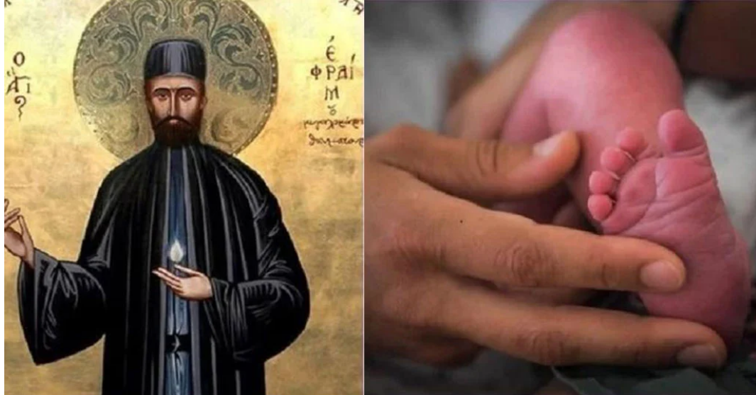 Θέλω κι εγώ με τη σειρά μου να ευχαριστήσω τον Θεό και τον Άγιο Εφραίμ για το θαύμα που αξιώθηκα να ζήσω. Ήμουν έγκυος και στις 29/12/2001 μου είχαν δώσει ημερομηνία τοκετού. Όταν έφθασε η ημερομηνία αυτή και δεν είχα ακόμη γεννήσει ο γιατρός μου έδωσε επιπλέον άλλη μία εβδομάδα. Στις 02/01/2002 μ’έπιασαν οι πόνοι από το πρωί, κι ενώ πήγα στο Νοσοκομείο και με εξέτασε η μαία, μου είπε ότι ψάχνουν τον γυναικολόγο μου, επειδή ήταν μάλλον τοκετός.