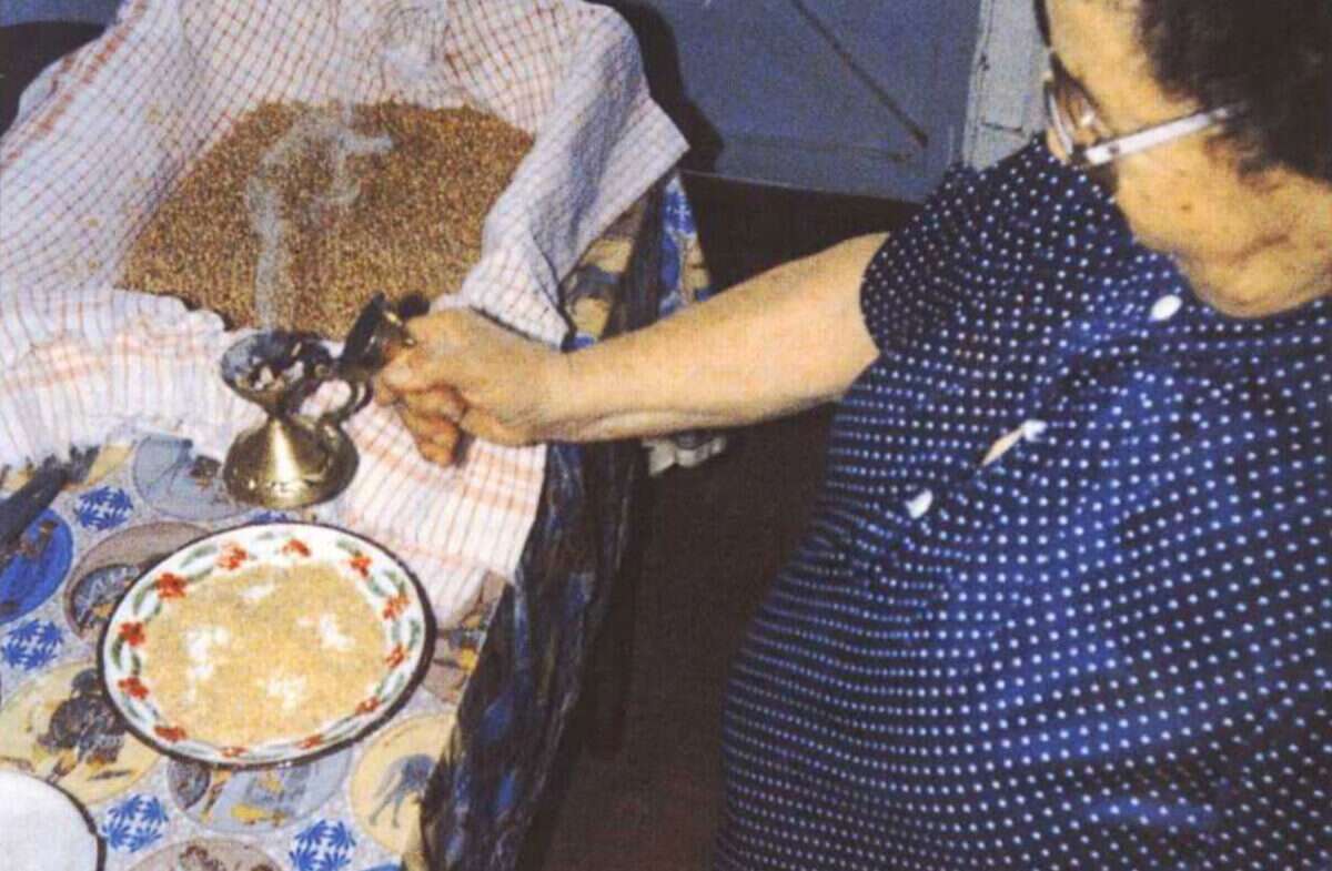 Επαναλαμβάνουμε τρεις φορές. Τελειώνοντας τα δωμάτια βγαίνουμε στην εξώπορτα και σταυρώνουμε τρεις φορές με το λιβανιστήρι λέγοντας τρεις φορές.