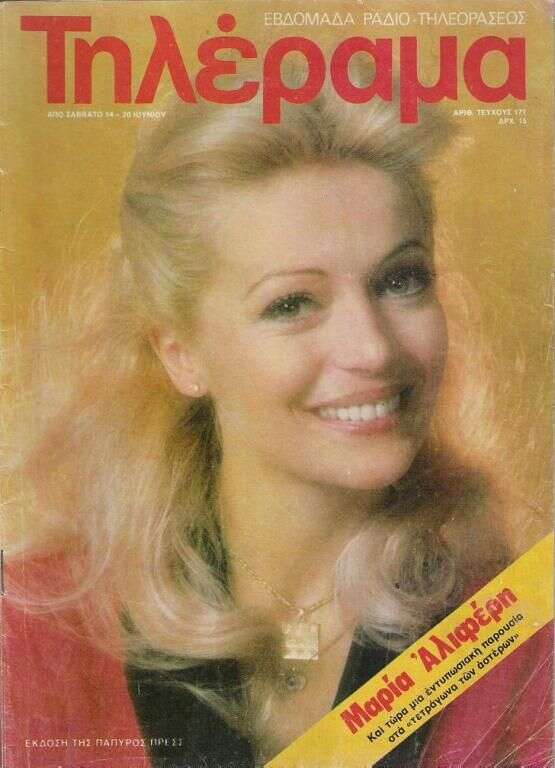 Μαρία Αλιφέρη: Όταν κάθε εφορά έκλεινε την εκπομπή τα “Τετράγωνα των αστέρων”, λέγοντας “Σας αγαπώ” στο κοινό που την παρακολουθούσε, ίσως να μην ήταν απλά μια ατάκα που στόχευε στην τηλεθέαση, αλλά να το εννοούσε. Γιατί η Μαρία Αλειφέρη προσπαθούσε πάντα να έχει μια καλή σχέση με το κοινό της. Δούλευε σκληρά για να το ευχαριστεί, το σεβόταν, δεν το σνόμπαρε. Γεννημένη στις 8 Μαΐου 1950 ως Μαρία Αλιφεροπούλου στον Άγιο Ιωάννη Λακωνίας, όταν μεγάλωσε σπούδασε Νομική στην Αθήνα. Αν και ξεκίνησε την καριέρα της ως ηθοποιός, παίζοντας σε τηλεοπτικές σειρές, τελικά καθιερώθηκε μέσα από την παρουσίαση τηλεπαιχνιδιών.