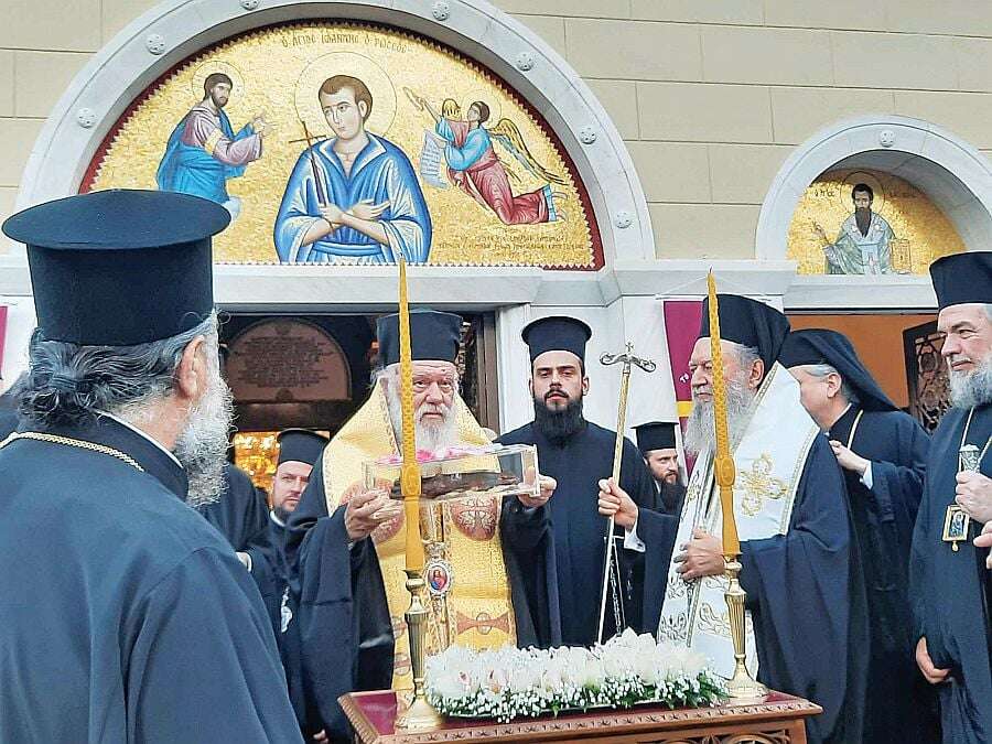 Μέγιστη στιγμή για τους απανταχού χριστιανούς αποτέλεσε η επιστροφή τμήματος της δεξιάς χειρός του αγίου Ιωάννου του Ρώσσου, η οποία επανενώθηκε με το άφθαρτο σκήνωμα. Η άφιξη της χειρός στον ιερό ναό έγινε το απόγευμα της Κυριακής, παρουσία του Αρχιεπισκόπου Αθηνών Ιερωνύμου, του Μητροπολίτου Χαλκίδος Χρυσοστόμου, αλλά και κληρικών της Ιεράς Μητροπόλεως, με το συγκινημένο πλήθος που κατέκλυσε το ναό εν όψει της γιορτής του αγίου να παρακολουθεί συγκινημένο τη λαμπρή τελετή.