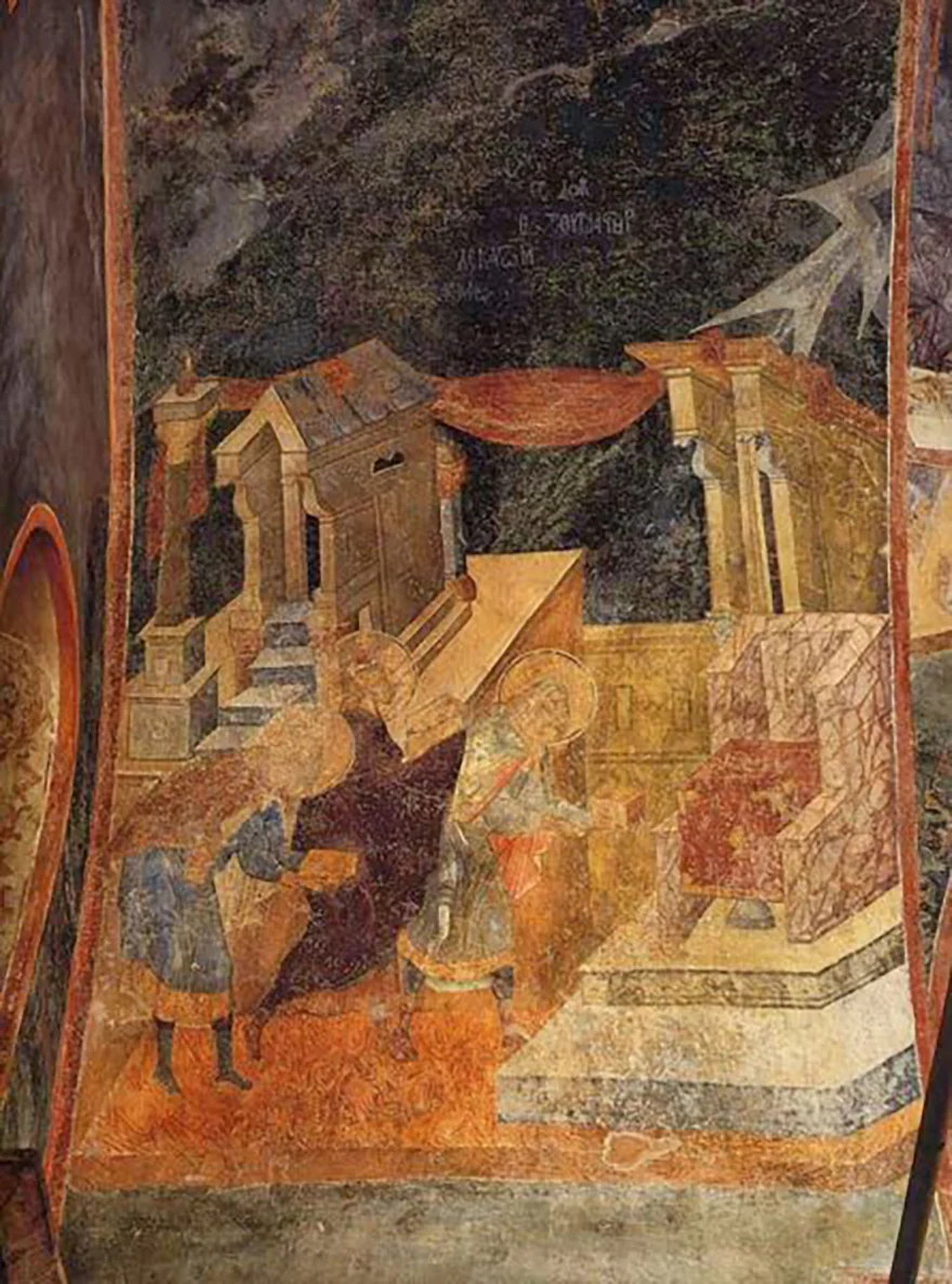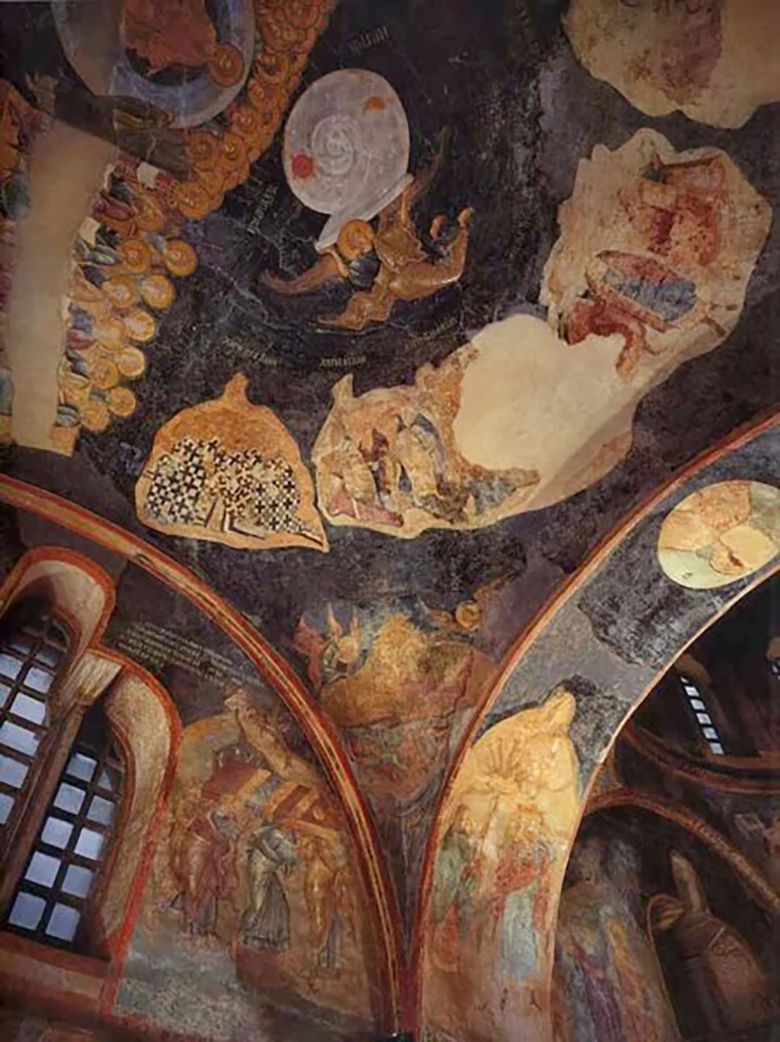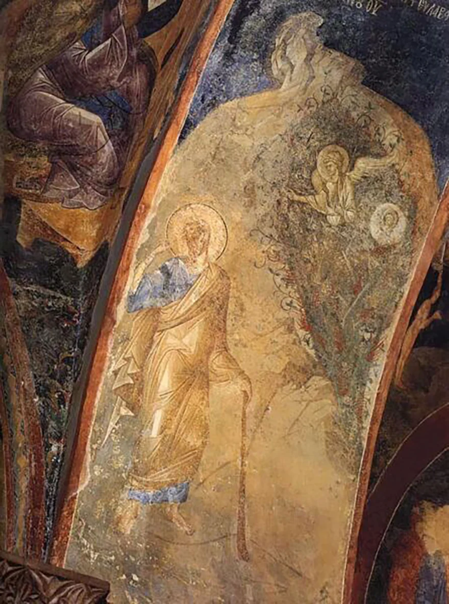 Αξιόλογη στη σειρά των σκηνών της Παλαιάς Διαθήκης είναι η παράσταση της κλίμακος του Ιακώβ στη δυτική πλευρά του νότιου τοίχου.Το δυτικό τμήμα διακοσμείται με σκηνές από την Παλαιά Διαθήκη που αποτελούν προεικονίσεις της Παναγίας, διαμορφώνοντας έτσι με ζωγραφικά μέσα έναν ύμνο στη Θεοτόκο.