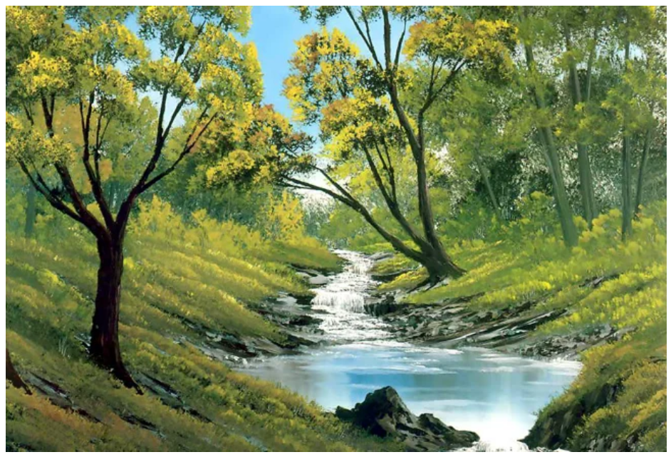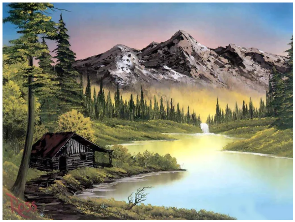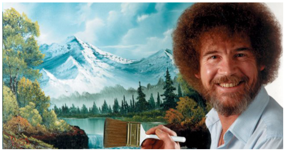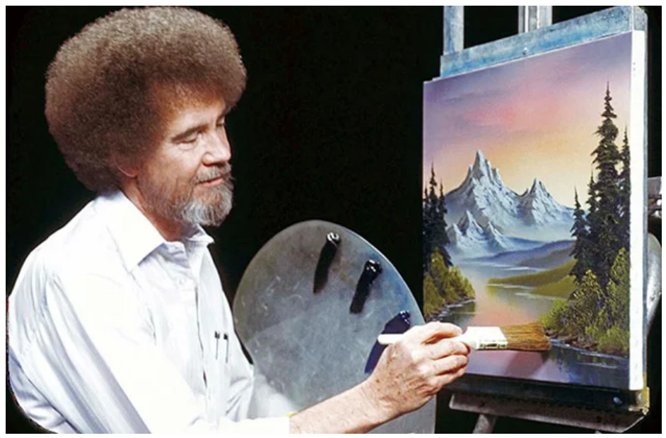 Ο τηλεδάσκαλος της ζωγραφικής που παρουσίαζε δωρεάν τις εκπομπές του και δεν πουλούσε ποτέ τους πίνακές του έφτιαξε έναν χαρούμενο και ευτυχισμένο κόσμο με καφέ Βαν Ντάικ, λευκό τιτανίου, μπλε φθαλίου και κίτρινο ώχρας, παρασύροντάς μας στη χαρά της ζωγραφικής…