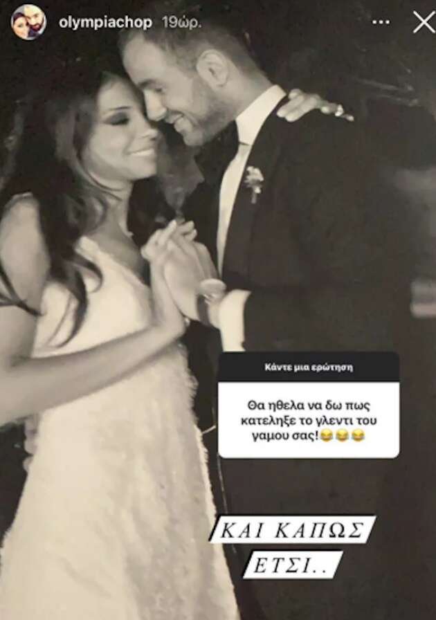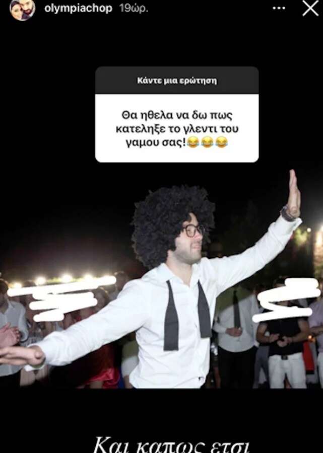 Η Ολυμπία Χοψονίδου δημοσίευσε και φωτογραφίες από το πάρτι του γάμου, αποκαλύπτοντας ότι ο Βασίλης Σπανούλης ανέλαβε τη διασκέδαση τραγουδώντας καραόκε.