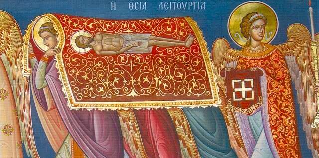Όταν ο Ιερέας έφτασε στην Αγία Τράπεζα, και ακούμπησε τα Τίμια Δώρα οι Άγγελοι τη σκέπαζαν με τις φτερούγες τους,