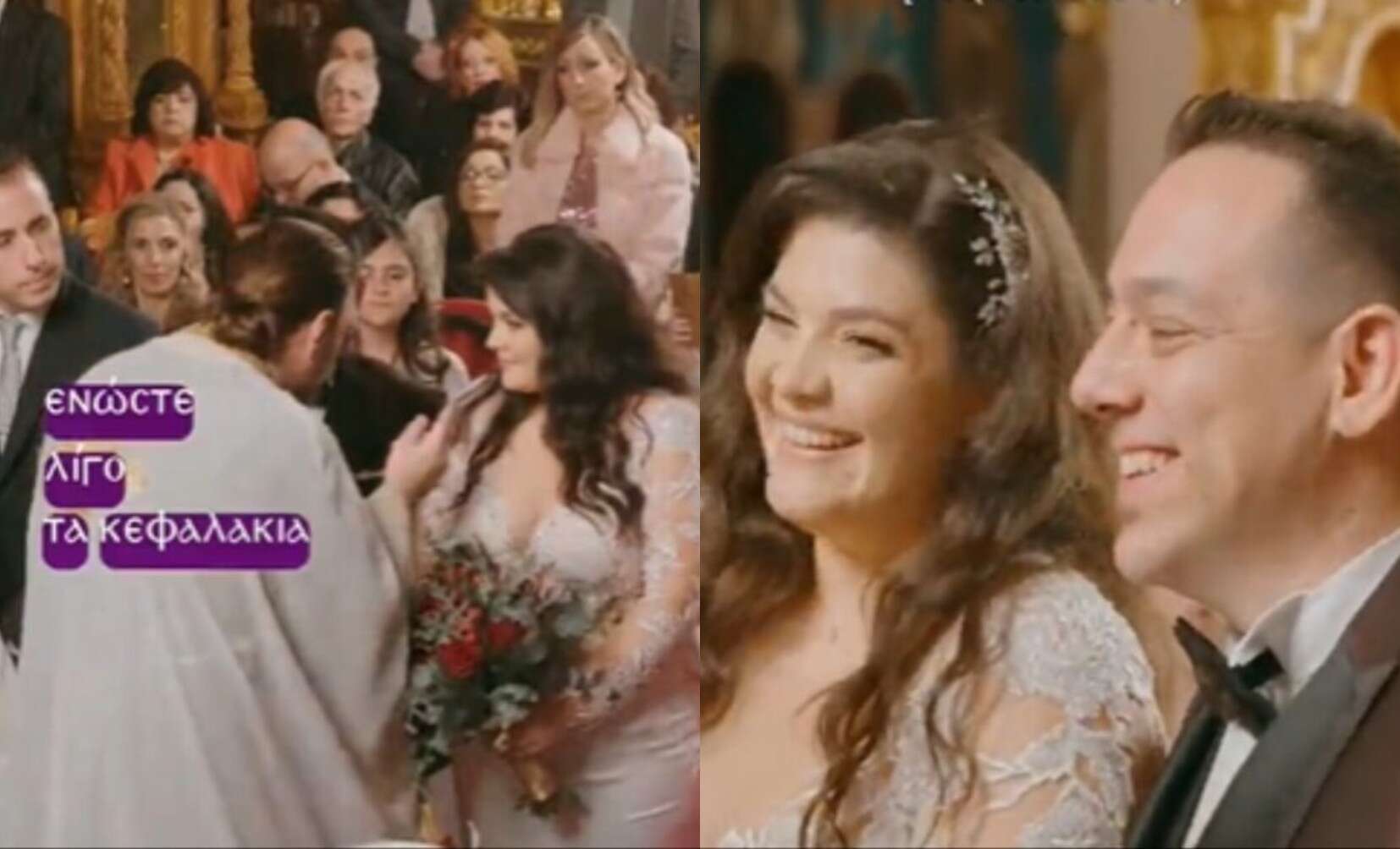 Ιερέας: «Ενώστε τα κεφαλάκια σας» (το ζευγάρι τα ενώνει διστακτικά).