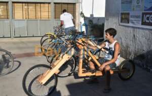 Ο 14χρονος Γιώργος έκανε και μια χαλαρή βόλτα μπροστά μας για να μας δείξει ότι το ποδήλατο λειτουργεί κανονικά, αποδεικνύοντας ότι όποιος έχει όρεξη και φαντασία μπορεί να πετύχει αρκετά καινοτόμα πράγματα!