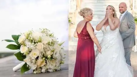 Δέος και συγκίνηση στον γάμο του Άγγελου και της Χριστίνας, όταν η νύφη κοντοστάθηκε να χαιρετήσει τον πατέρα της που την κοιτούσε από ψηλά.