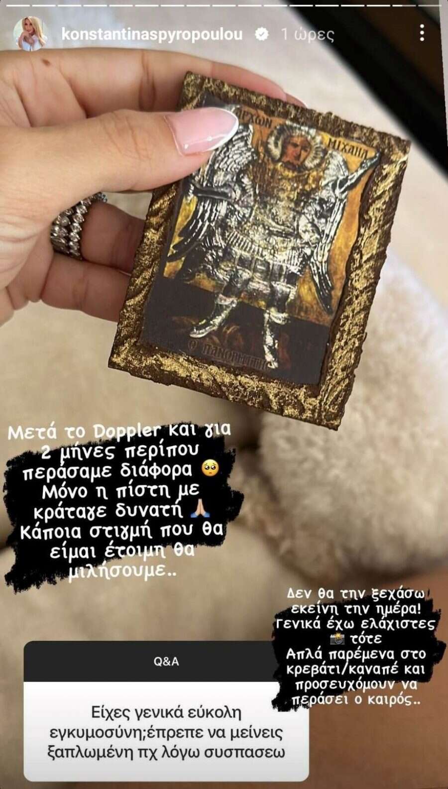 Αυτή όμως δεν ήταν η μόνη ατυχία που βρήκε την Κωνσταντίνα Σπυροπούλου. Όπως αποκάλυψε μέσα από ένα Q&A που έκανε στον προσωπικό της λογαριασμό στο Instagram και κατά τη διάρκεια της εγκυμοσύνης της πέρασε δυσκολίες που ξεπέρασε μόνο με πίστη στο Θεό.