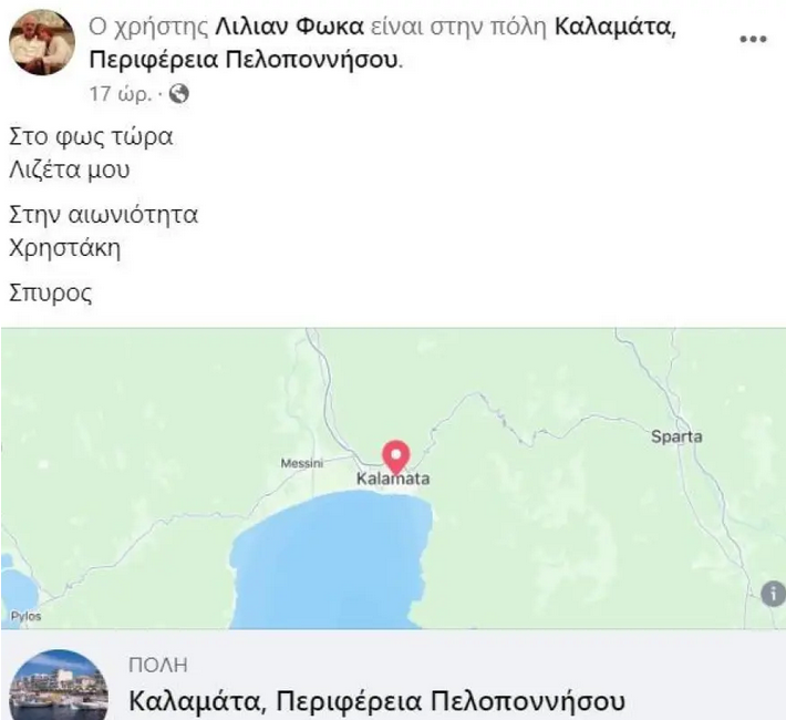 «Λιζέτα, κούκλα μου, κράτα γερά. Σπύρος» έγραψε η Λίλιαν Φωκά στο Facebook.