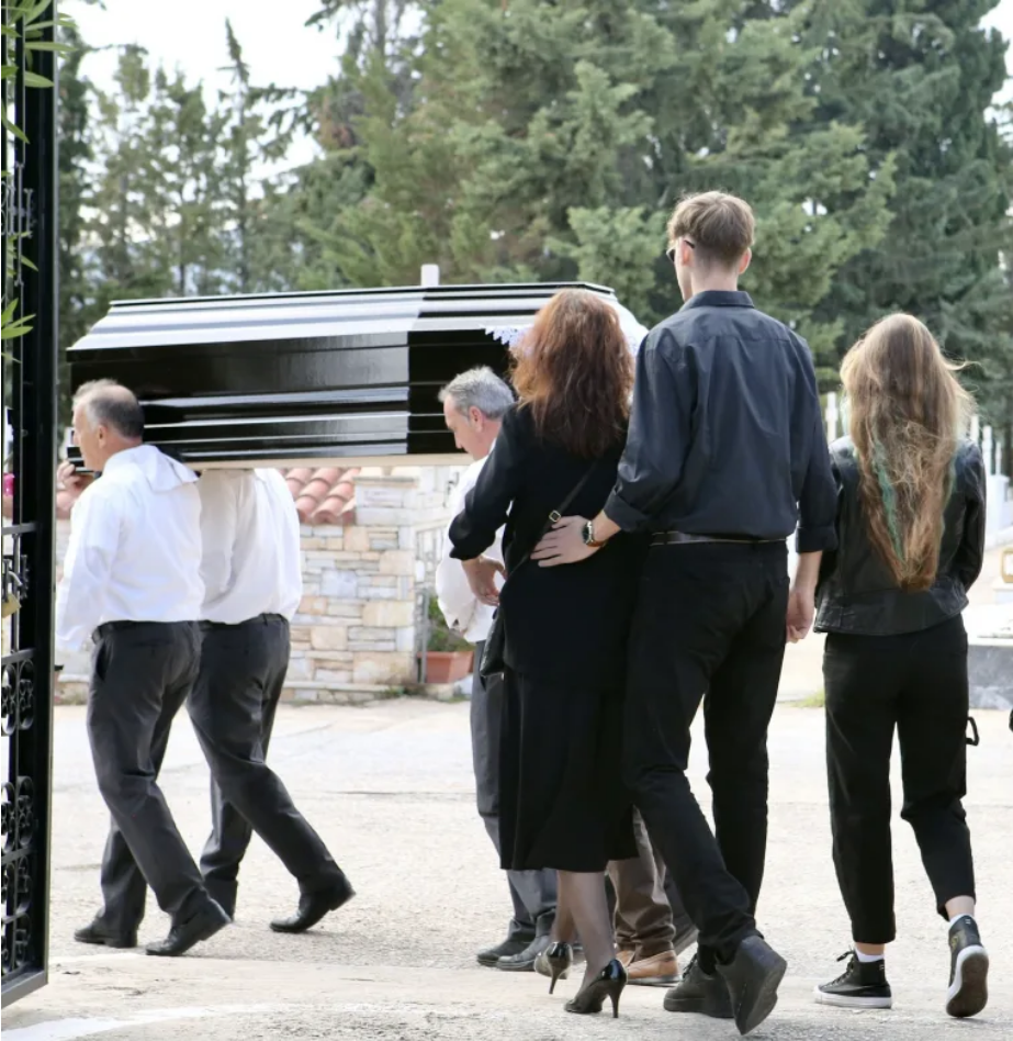 Πενθεί όλη η Ελλάδα με το θάνατο του Αίαντα Μανθόπουλου. Καταβεβλημένη η σύντροφός του, Ελισάβετ Σταμοπούλου τον αποχαιρέτησε στο κοιμητήριο της Παιανίας.