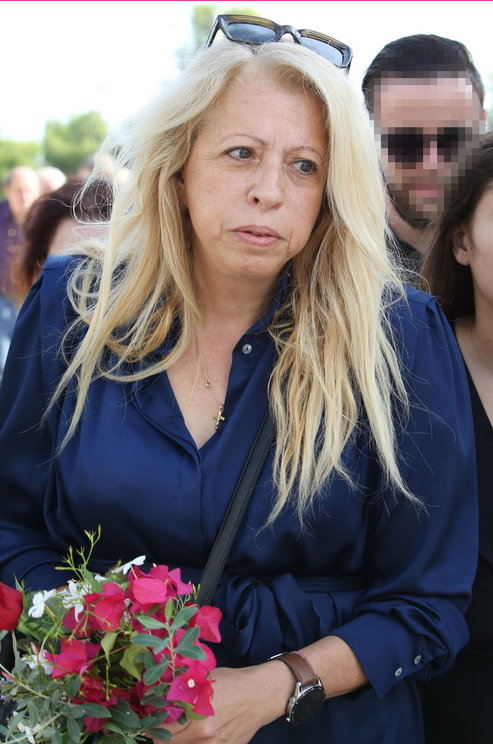 H Ελισάβετ Σταματοπούλου κρατώντας λουλούδια στα χέρια της και με δάκρυα στα μάτια είπε το τελευταίο αντίο στον επί επτά χρόνια σύντροφό της και γνωστό ηθοποιό, Αίαντα Μανθόπουλου.