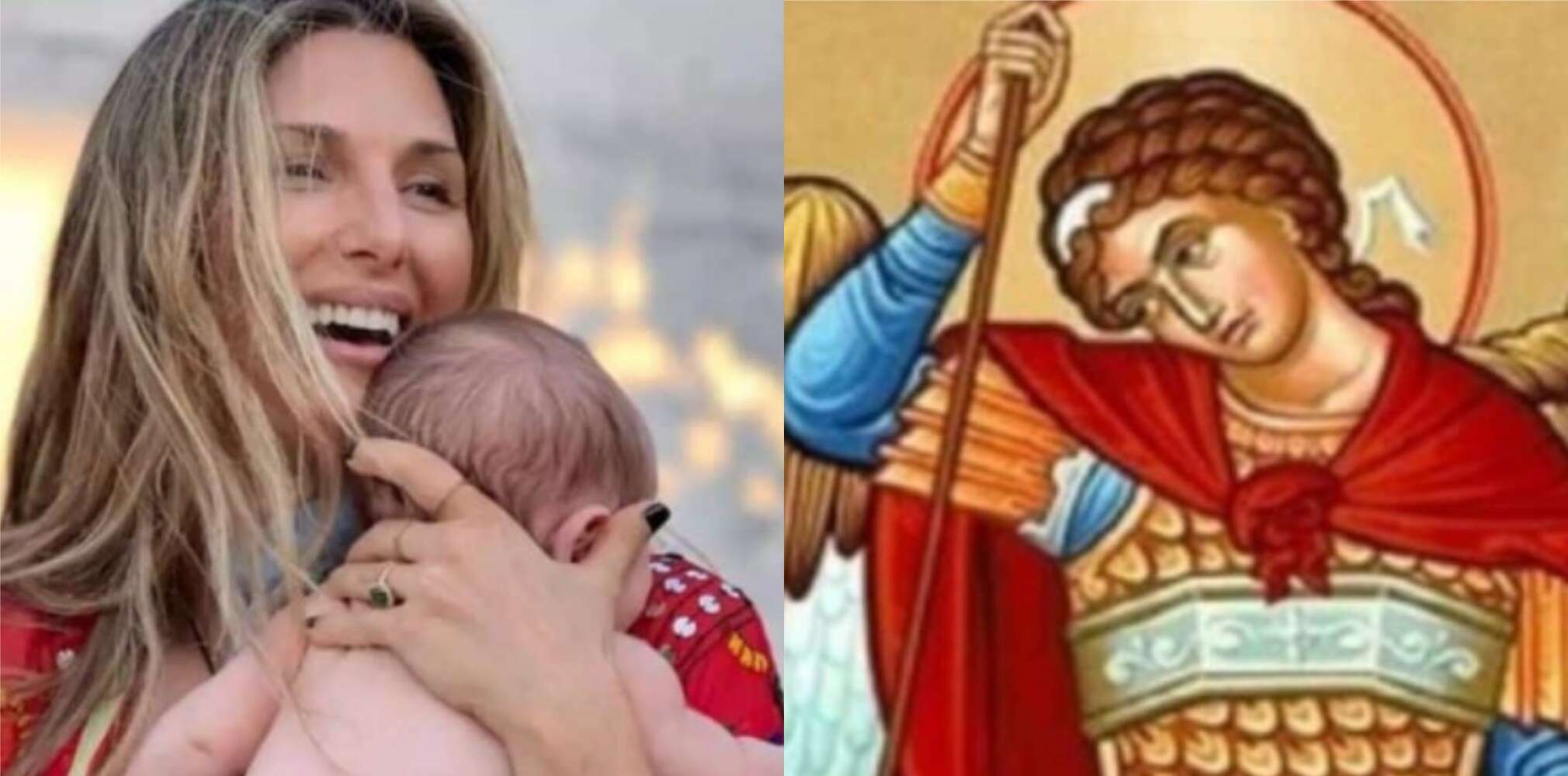 “Όταν μπήκε στη ζωή μου ο Κωνσταντίνος, ήρθαμε διακοπές στην Τήνο. Είπα στην Παναγία πως αν μου χαρίσει ένα παιδάκι θα ερχόμουν να το βαπτίσω εδώ. Δεν είμαι καλή στα τάματα. Με το που γίνεται το θαύμα δεν είχα διαλέξει όνομα για το παιδί και καθώς χάιδευα την κοιλιά μου λέγοντας άγγελέ μου, άγγελε, κολλάει εκεί το όνομα στα χείλη μου. Δεν μπορούσα να πω τίποτα άλλο από αυτό κι έτσι βγήκε ο Μιχαήλ – Άγγελος” είπε χαρακτηριστικά.