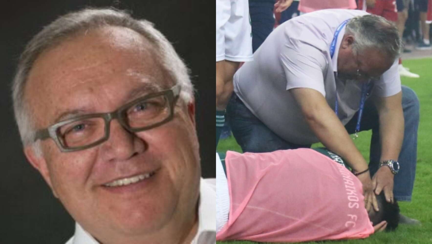 Ανάμεσα στα άλλα επισήμανε: «Όσον αφορά στον διαιτητή στο ιατρικό κομμάτι το αποδίδει πλήρως. Όχι δεν την είδαμε την κροτίδα γιατί καθόμαστε στον μεσαίο πάγκο. Το μόνο που άκουσα ήταν το ‘γιατρέ τρέξε’. Είχε οριζόντιο νυσταγμό. Δεν κοροϊδευε. Το λέμε προσωρινή υποακουσία. Ούτε άκουγε ούτε μπορούσε να σταθεί όρθιος. Εγώ ζήτησα να έρθει φορείο.