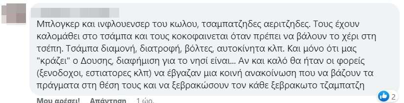 Ήδη από το πρωί της Τρίτης, το συγκεκριμένο βίντεο “παίζει” στα περισσότερα ποσταρίσματα των κατοίκων του νησιού. Τα σχόλια εάν και ποικίλλουν, είναι κατά του γνωστού δημοσιογράφου.