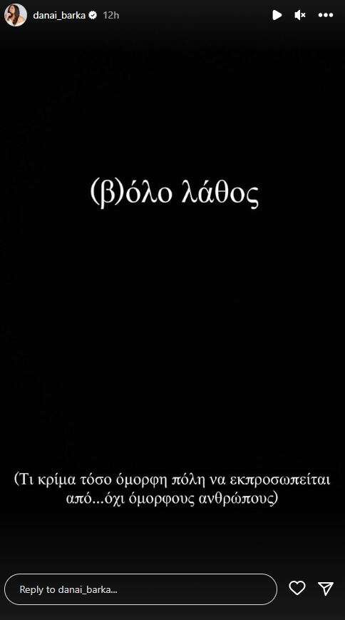 «Χθες δεν άντεξα, έκανα ένα στόρι στο instagram που δεν είπα κάτι πολύ άσχημο, είπα κάτι που μου βγήκε σε σχέση με αυτές τις δηλώσεις. Υπήρχαν άνθρωποι που δεν κατάλαβαν τι είπα, δεν έκρινα το έργο που μπορεί να έχει κάνει ένας άνθρωπος», είπε αρχικά η Δανάη Μπάρκα.