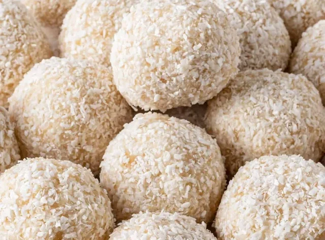 4. Πλάθετε μικρές μπάλες και τις κυλάτε σε ινδοκάρυδο.