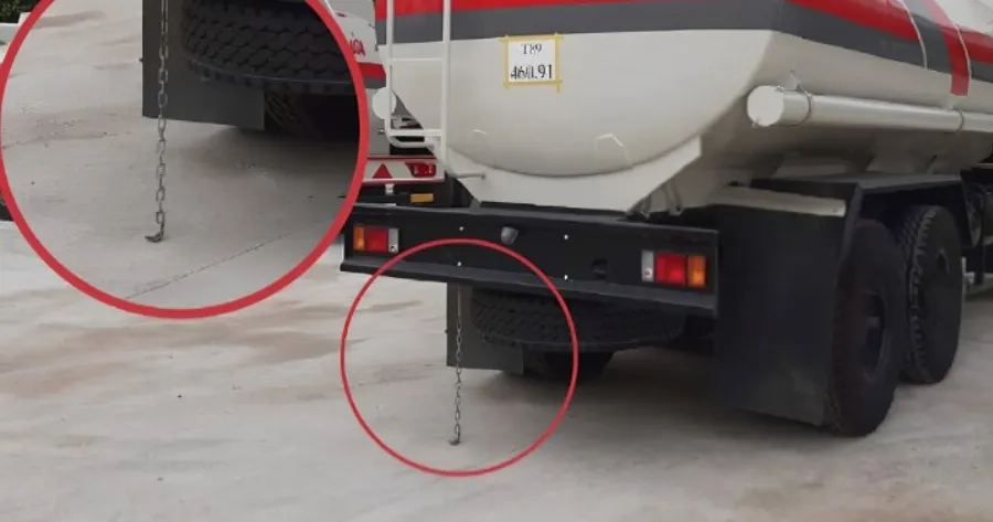 Τα βυτιοφόρα έχουν αλυσίδες που κρέμονται στο πίσω μέρος για την εκκένωση στατικού ηλεκτρισμού, διασφαλίζοντας την ασφάλεια αποτρέποντας τους σπινθήρες κοντά σε εύφλεκτα υλικά.