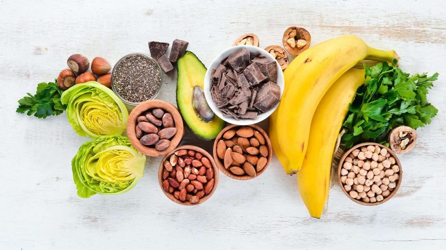 Φρούτα και λαχανικά: Τα πράσινα φυλλώδη λαχανικά, όπως το σπανάκι και το μπρόκολο, είναι εξαιρετικές πηγές μαγνησίου. Άλλες καλές πηγές περιλαμβάνουν τους ξηρούς καρπούς, τους σπόρους και τα όσπρια.