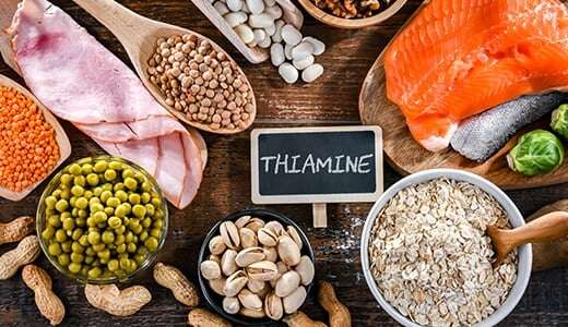 Θειαμίνη – γνωστή ως βιταμίνη Β1. Η θειαμίνη βοηθά το σώμα να μετατρέψει τους υδατάνθρακες και τα λίπη σε ενέργεια, ειδικά για τον εγκέφαλο. Είναι τόσο ζωτικής σημασίας το γεγονός ότι η κυβέρνηση των ΗΠΑ εμπλουτίζει κοινά τρόφιμα όπως το ψωμί και τα δημητριακά με αυτήν. Ωστόσο, αυτό μπορεί να μην είναι αρκετό, ειδικά επειδή πολλές σύγχρονες μέθοδοι μαγειρέματος και επεξεργασμένα τρόφιμα την αφαιρούν.