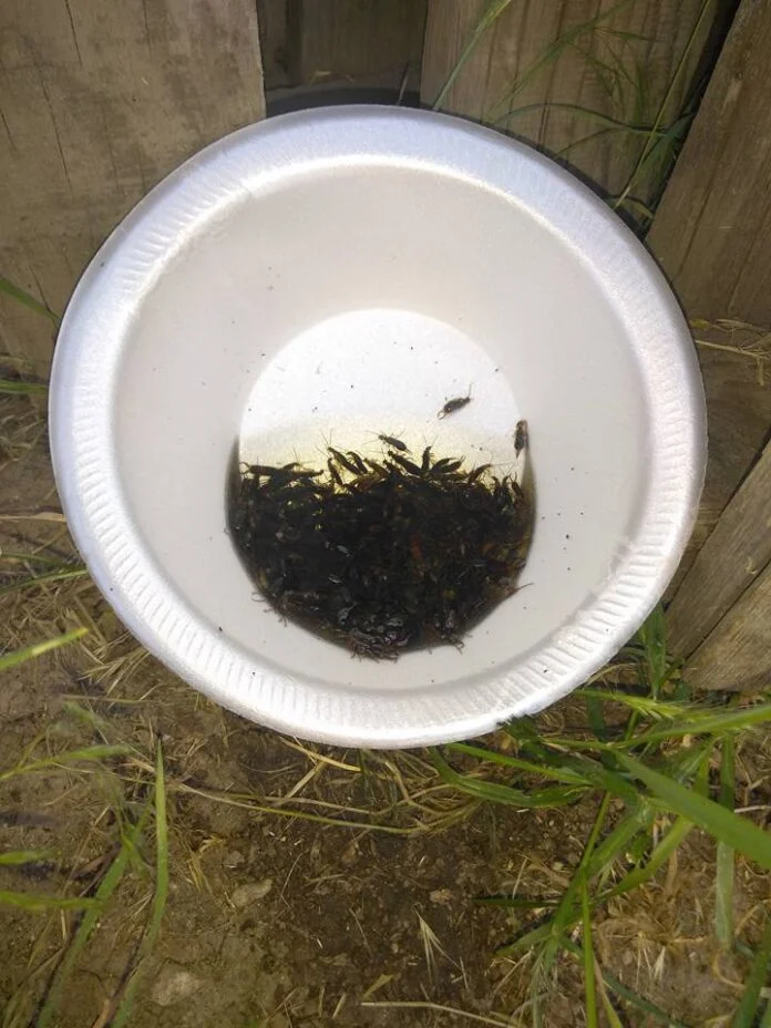 Η Αλίσια Αλεξάντερ μοιράστηκε στο διαδίκτυο ότι κατάφερε να παγιδεύσει έναν εκπληκτικό αριθμό ψαλίδων στην αυλή της χρησιμοποιώντας μόνο ένα ρηχό μπολ και λίγο ελαιόλαδο. Έριξε περίπου μισό φλιτζάνι ελαιόλαδο στο μπολ και το έβαλε στον κήπο της.