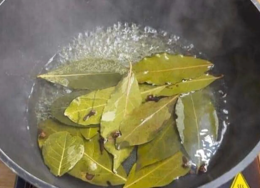 1. Σε μια κατσαρόλα βράζουμε 15 φύλλα δάφνης και 10 γαρύφαλλα σε ένα φλιτζάνι νερό.