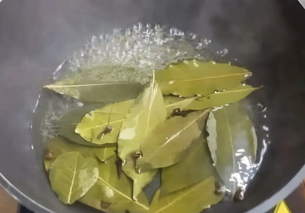 1. Σε μια κατσαρόλα βράζουμε 15 φύλλα δάφνης και 10 γαρύφαλλα σε ένα φλιτζάνι νερό.