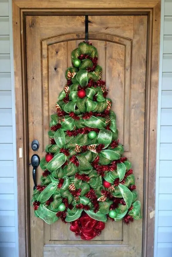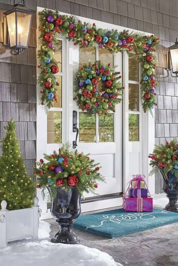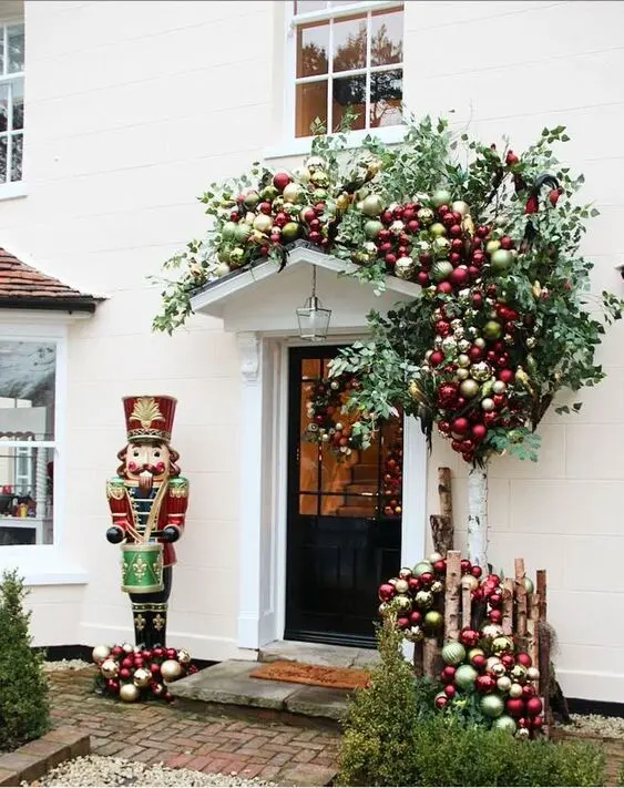 Χρησιμοποιήστε το παραδοσιακό κόκκινο, ασήμι, χρυσό και πράσινο για να κάνετε μια εντυπωσιακή εξώπορτα .