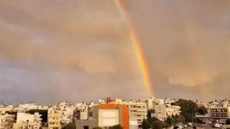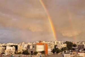 Ένα υπέροχο θέαμα αντίκρισαν οι κάτοικοι του Ηρακλείου Κρήτης το απόγευμα της Κυριακής, καθώς διπλό ουράνιο τόξο ξεχώρισε στον ουρανό.