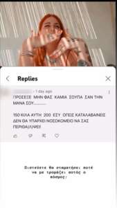 Μετά τη δημοσίευση ενός βίντεο που ανέβασαν η Μπέσσυ Αργυράκη και η αγαπημένη της κόρη, Εβελίνα, ο χώρος των social media γέμισε από συμπαθητικά σχόλια και ευχές ανάρρωσης. Ωστόσο, ένα σχόλιο ξεχώρισε και προκάλεσε αντιδράσεις. Το σχόλιο ανέφερε: «Πρόσεξε μην φας καμιά σούπα σαν τη μάνα σου… 150 κιλά αυτή, 200 εσύ, όπως καταλαβαίνεις δεν θα υπάρχει νοσοκομείο να σας περιθά(λ)ψει».