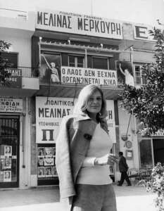 GREECE – JANUARY 01: Campaigning For Gheorghios Papandhreou, Leader Of The Center’S Union Coalition Party And Candidate In The Greek Legislative Elections Of 1963, The Greek Actress-Singer Melina Mercouri Poses Before Her Campaign Office In Piraeus, Harbour Of Athens. (Photo by Keystone-France/Gamma-Keystone via Getty Images)