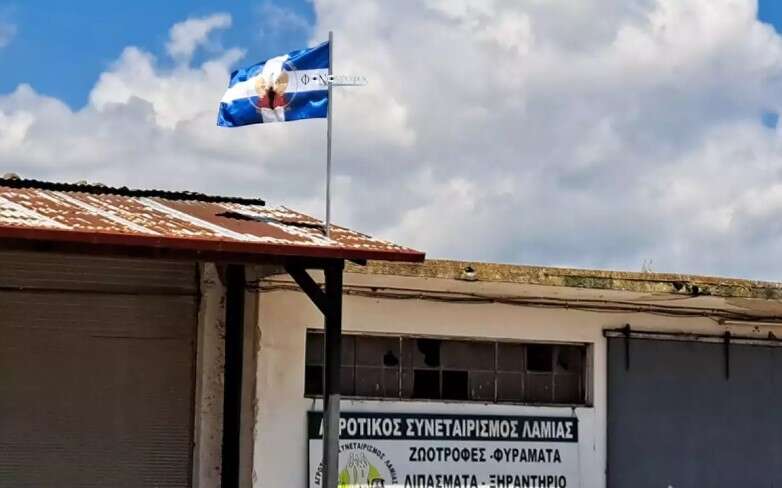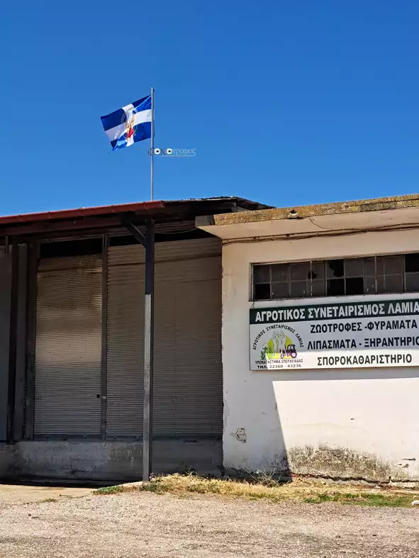 Η σημαία της Χούντας βρίσκεται στις αποθήκες του Αγροτικού Συνεταιρισμού Λαμίας, στη Φθιώτιδα σε εμφανέστατο σημείο.