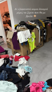 «Αν εξαφανιστώ καμιά δεκαριά μέρες να ξέρετε που θα με βρείτε», ανέφερε αρχικά η Κωνσταντίνα Σπυροπούλου δημοσιεύοντας ένα δωμάτιο γεμάτο ρούχα.