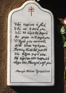 Η επιγραφή στον Τάφο του Αγίου Παϊσίου του Αγιορείτου