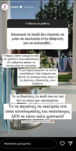 Το να βαφτίσεις το παιδί σου σε ναό δεν το κάνει πιο φωτισμένο. Το να πηγαίνεις σε εκκλησία ενώ είσαι κουτσομπόλης και σκ@τόψυχος δεν σε κάνει Χριστιανό. Η ευλογία ξεκινά από μέσα μας» έγραψε με νόημα η Ιωάννα Τούνη.