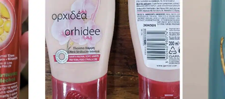 Οι δύο μαλακτικές μαλλιών είναι της Garnier: Color resist και BALSAM ορχιδέα orhidee και το αφρόλουτρο είναι το Magic oil της Neutromed.