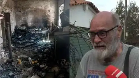 Ένας ηλικιωμένος κάτοικος Μενιδίου είδε τους κόπους μιας ζωής να γίνονται στάχτη, καθώς έχασε το σπίτι του από τη φωτιά στην Πάρνηθα.