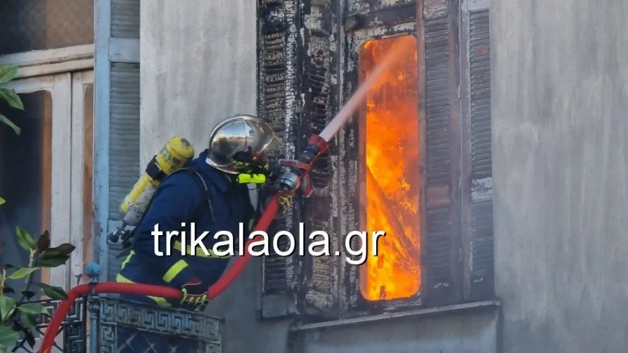 Στάχτη έγινε σήμερα το μεσημέρι το εσωτερικό του ισογείου και του πρώτου ορόφου, αλλά και της σκεπής παλιάς μονοκατοικίας, που βρίσκεται απέναντι ακριβώς από τον Μητροπολιτικό Ιερό Ναό του Αγίου Νικολάου στα Τρίκαλα.