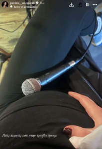 Η τραγουδίστρια, σήμερα, Κυριακή, ανάρτησε μία φωτογραφία, στην οποία φαίνεται να ακουμπάει τη φουσκωμένη της κοιλίτσα και να ρωτάει το μωράκι της «Πώς περνάς εσύ στην πρόβα άραγε;».