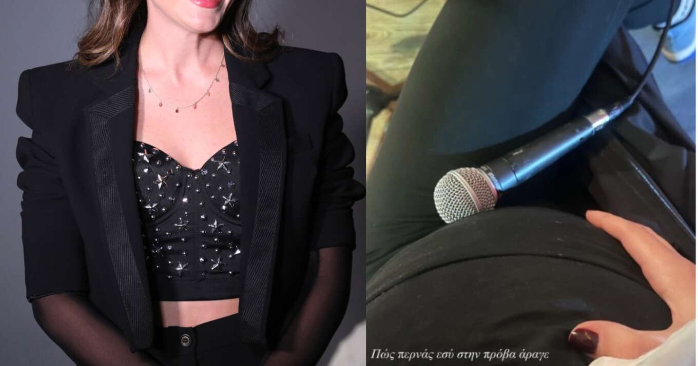Η τραγουδίστρια, σήμερα, Κυριακή, ανάρτησε μία φωτογραφία, στην οποία φαίνεται να ακουμπάει τη φουσκωμένη της κοιλίτσα και να ρωτάει το μωράκι της «Πώς περνάς εσύ στην πρόβα άραγε;».