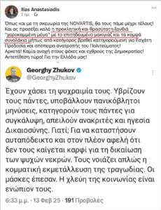 Ο ίδιος είχε κάνει ανάρτηση στον προσωπικό του λογαριασμό στο Facebook, στην οποία αναφερόταν στη Μαρία Καρυστιανού, περιγράφοντάς την ως “προκλητική και θρασύτατη ξανθιά “χαροκαμμένη μάνα” με το επιτηδευμένο μακιγιάζ και τα κομψά συνολάκια”.