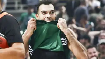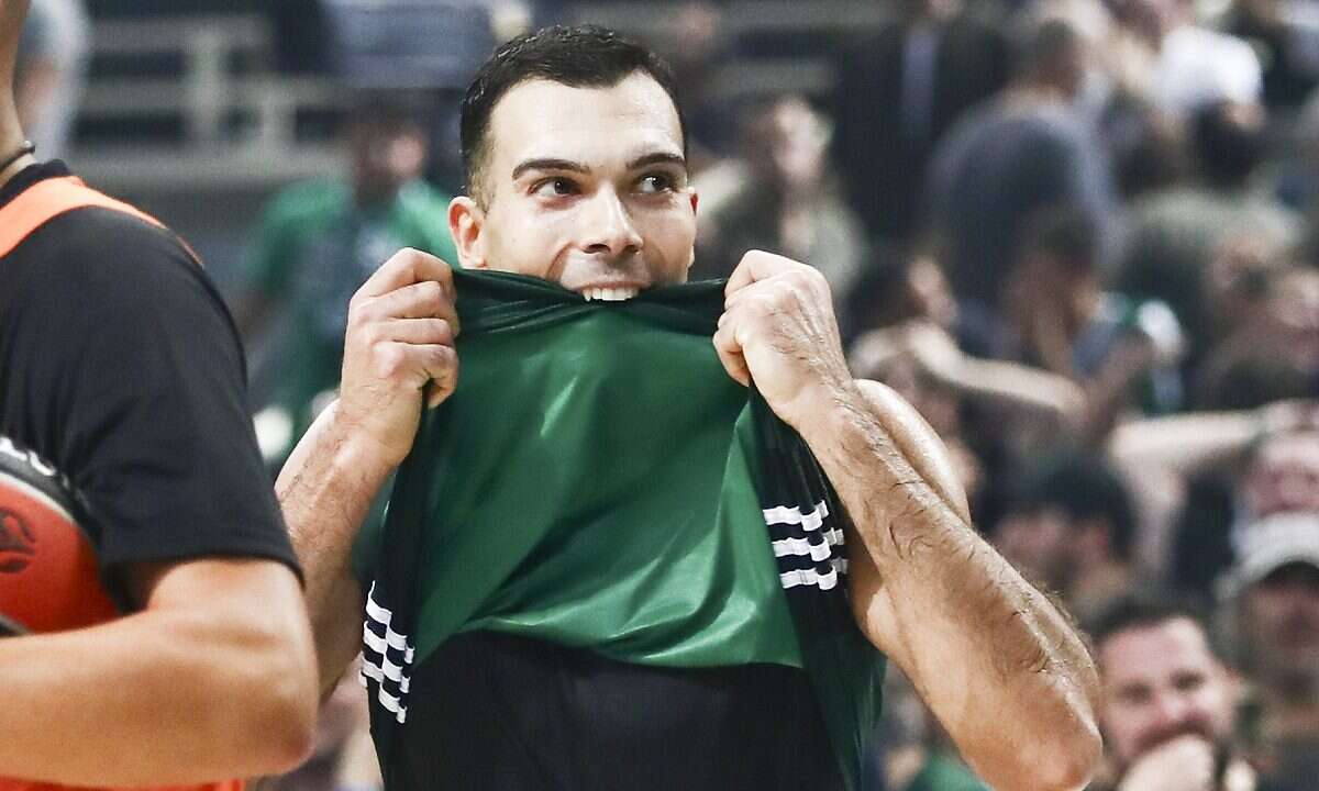 Το φιλί του Κώστα Σλούκα στη σύζυγό του μετά τη νίκη του Παναθηναϊκού