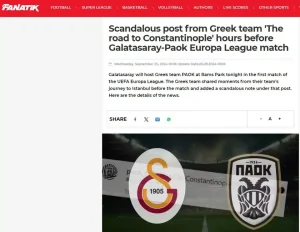 «Ο ΠΑΟΚ μοιράστηκε μια ανάρτηση στον λογαριασμό του στα social media για το ταξίδι του στην “Istanbul”, και ονόμασε το ταξίδι του ως «ο δρόμος για την Κωνσταντινούπολη»! Πολλοί χρήστες αντέδρασαν στην ανάρτηση» αναφέρει τουρκική εφημερίδα.