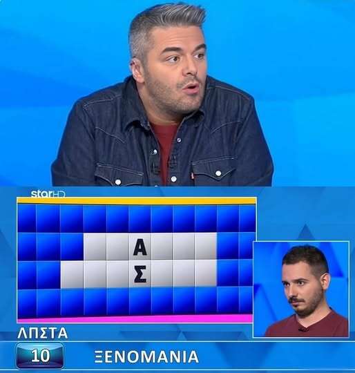 Ο Χάρης αγωνίστηκε στην κατηγορία «ξενομανία» και από τον προηγούμενο γύρο είχε επιλέξει τα γράμματα: «λ», «π», «σ», «τ» και από τα σύμφωνα το «α», εκ των οποίων –στον γρίφο– εμφανίστηκαν το προτελευταίο και το τελευταίο.
