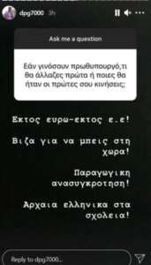 Μέσα από τον προσωπικό του λογαριασμό στο Instagram ο Δημήτρης Γιαννακόπουλος απάντησε σε μία σειρά από ερωτήσεις των followers του.