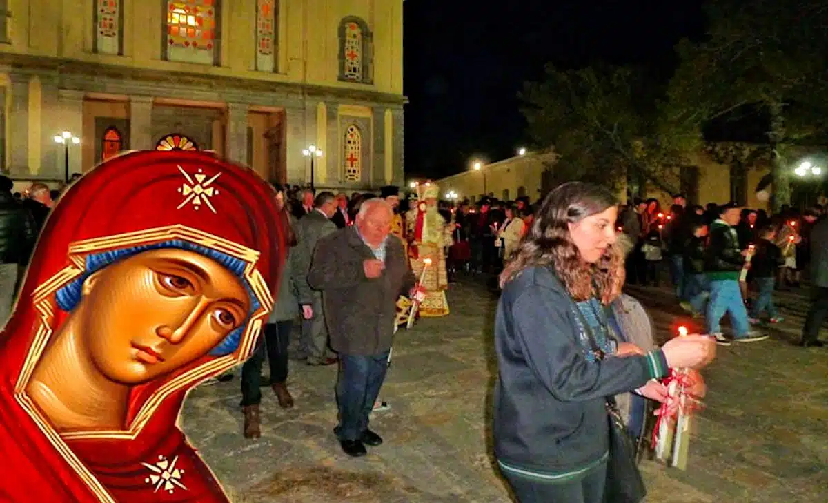 Μια τέτοια μέρα η Παναγιά κατέβη από τους ουρανούς για να γιορτάσει Ανάσταση μαζί με τους πιστούς. Κόσμος πολύς ήταν εκεί κ ευφράνθη η ψυχή της που έβλεπε τόσους πιστούς που ετίμουν το παιδί της.