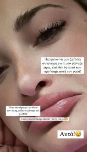 «Όμορφη καλημέρα από τον Νουνίτο κι εμένα. Είμαι στο καράβι για Σύρο. Πήρα καμπίνα για να είμαι πιο άνετα με το μωράκι μου. Είναι και ο Δημήτρης εδώ αλλά δε του μιλάω. Περιμένω να μου ζητήσει συγγνώμη γιατί μου φώναξε πριν, ενώ δεν έφταιγα που αργήσαμε αυτή τη φορά. Ήταν να πάρουμε το πλοίο των 7.15 αλλά το χάσαμε για τρία λεπτά. Πάλι καλά βρήκαμε πλοίο για τις 9.30» ανέφερε στις αναρτήσεις της η Ιωάννα Τούνη.