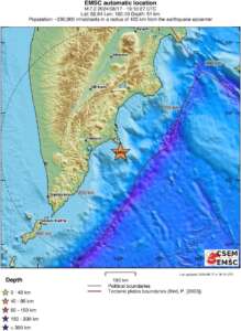 Σύμφωνα με το Ευρωμεσογειακό Σεισμολογικό Κέντρο, το επίκεντρο του σεισμού εντοπίζεται 91 χλμ. ανατολικά της πόλης Πετροπαβλόσκ-Καμτσάτσκι στη Ρωσία και το εστιακό βάθος υπολογίζεται στα 40 χλμ.