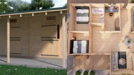 Το μικρό ξύλινο σπίτι μπορεί να χρησιμοποιηθεί για εξοχικό, ξενώνα ή αποθηκευτικό χώρο.